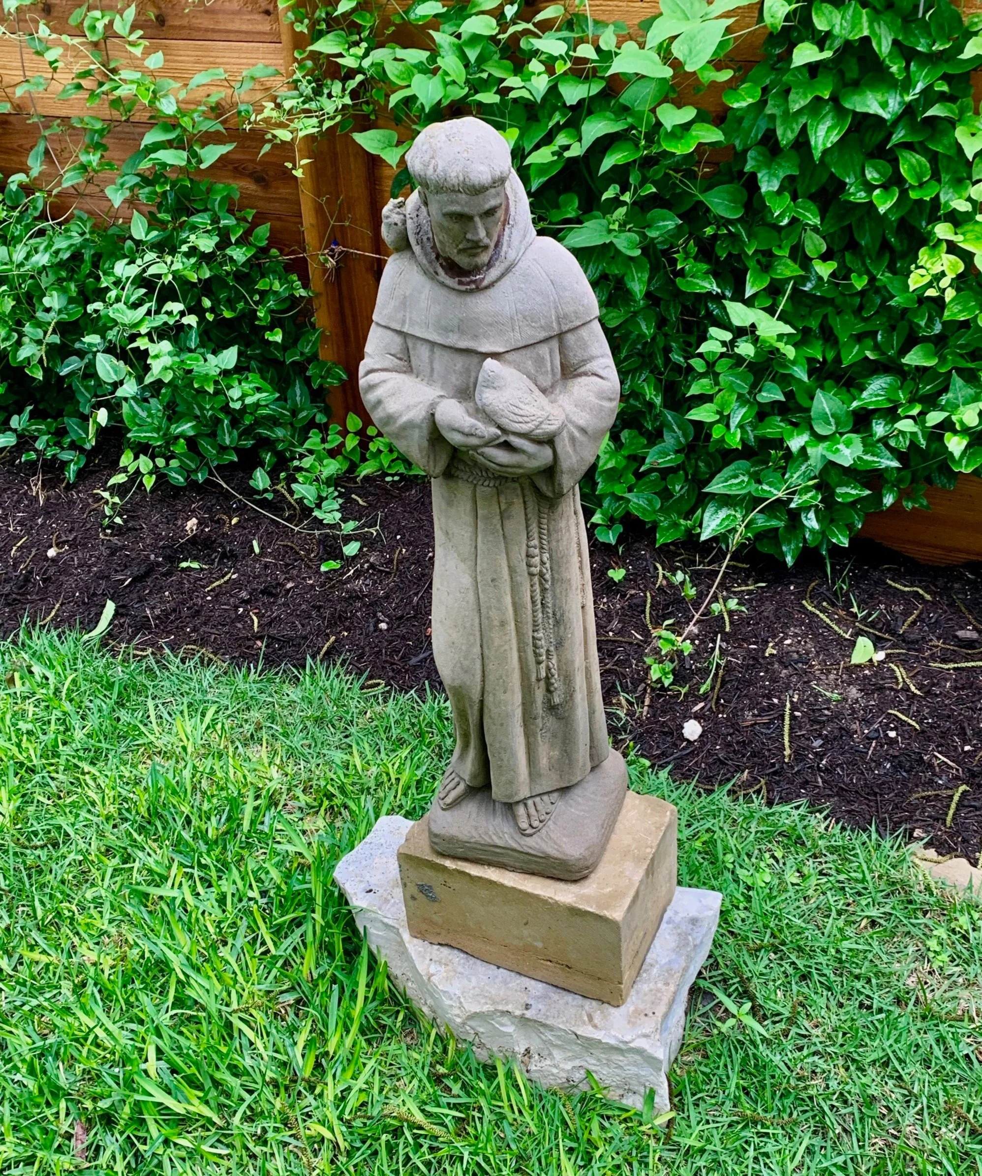 My Mother’s St. Francis…From Her West Texas home to preside over our Austin backyard…